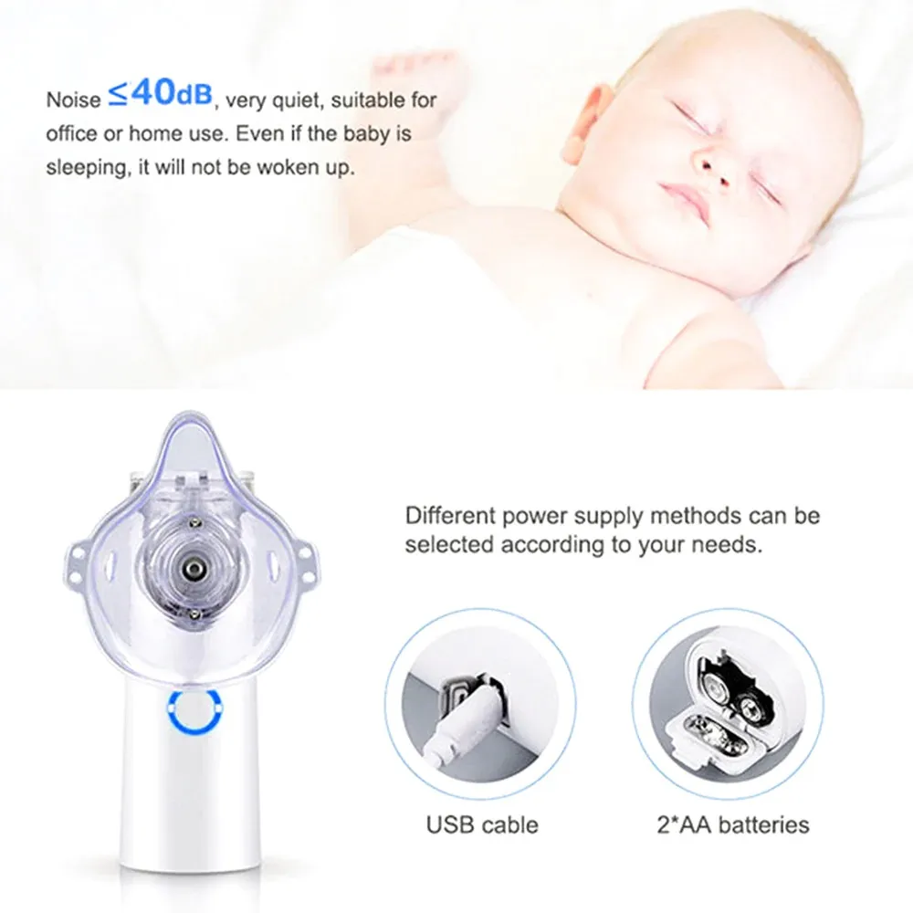 one-click start atomization. High and low atomization adjustable, suitable for people of different ages. Compact and portable, use this handheld nebulizer anytime and anywhere.